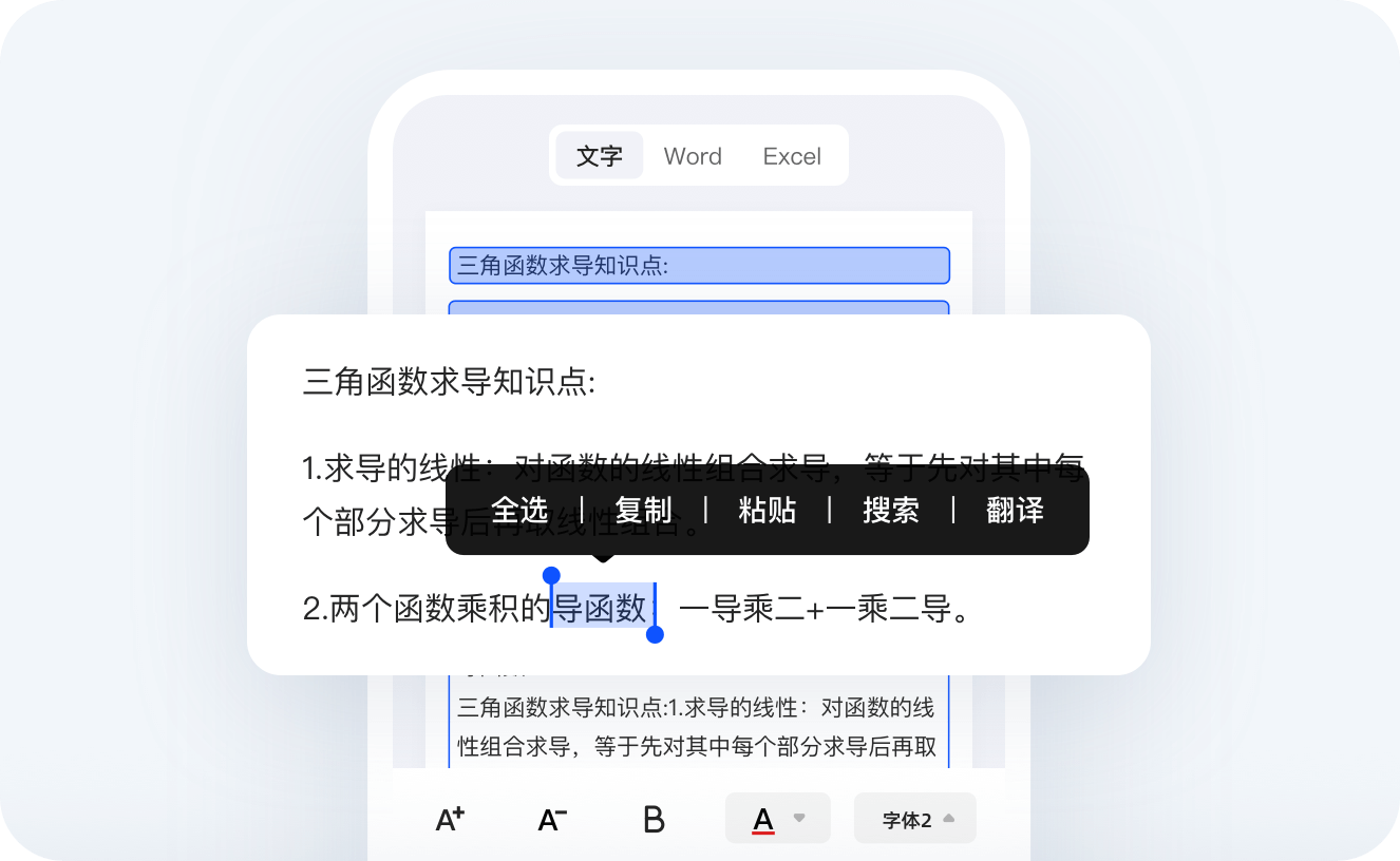精准识别图片文本,支持逐字或按段落自由选择复制,还原排版转 Word、转 Excel 在线编辑。